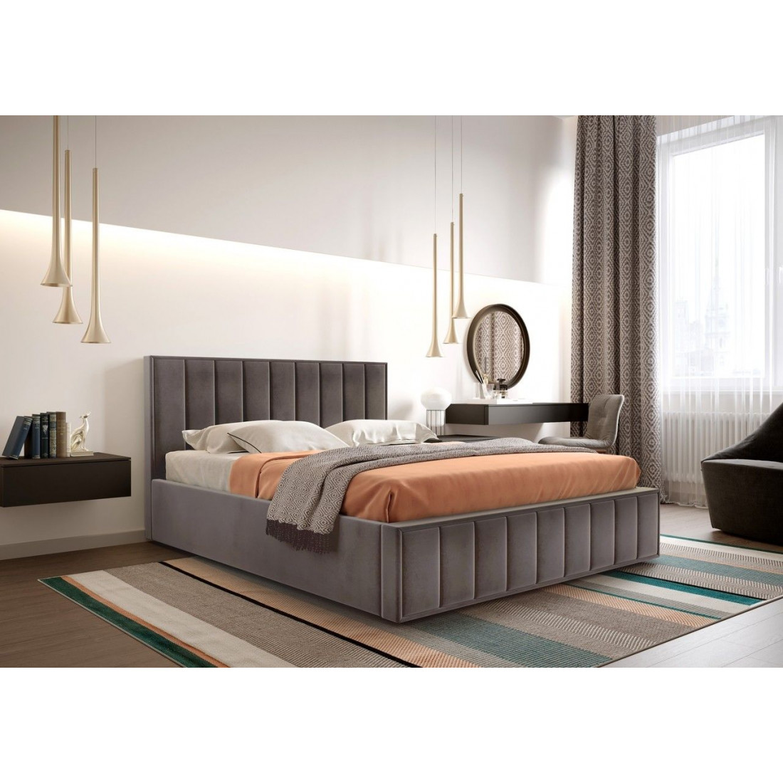 Кровать можно комплектовать ортопедическим основанием на пяти опорах или бельевым ящиком с подъемным ортопедическим основанием.