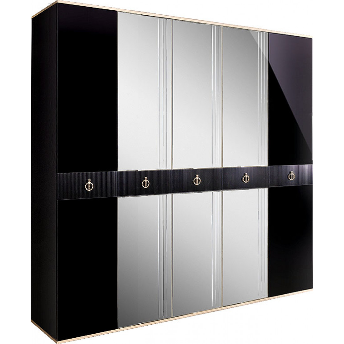 Пятистворчатый шкаф для одежды с зеркалом Rimini Solo РМШ1/5 (s) (черный)